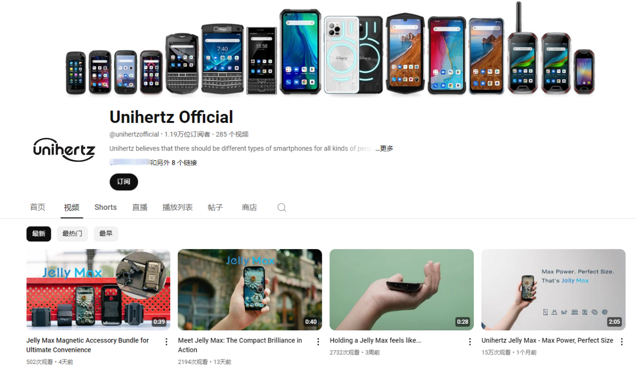 在YouTube上,Unihertz发布了详细的产品评测和使用教程,帮助用户更深入地了解产品的特点和优势。再通过与知名YouTuber合作,吸引大量订阅者和潜在买家。
