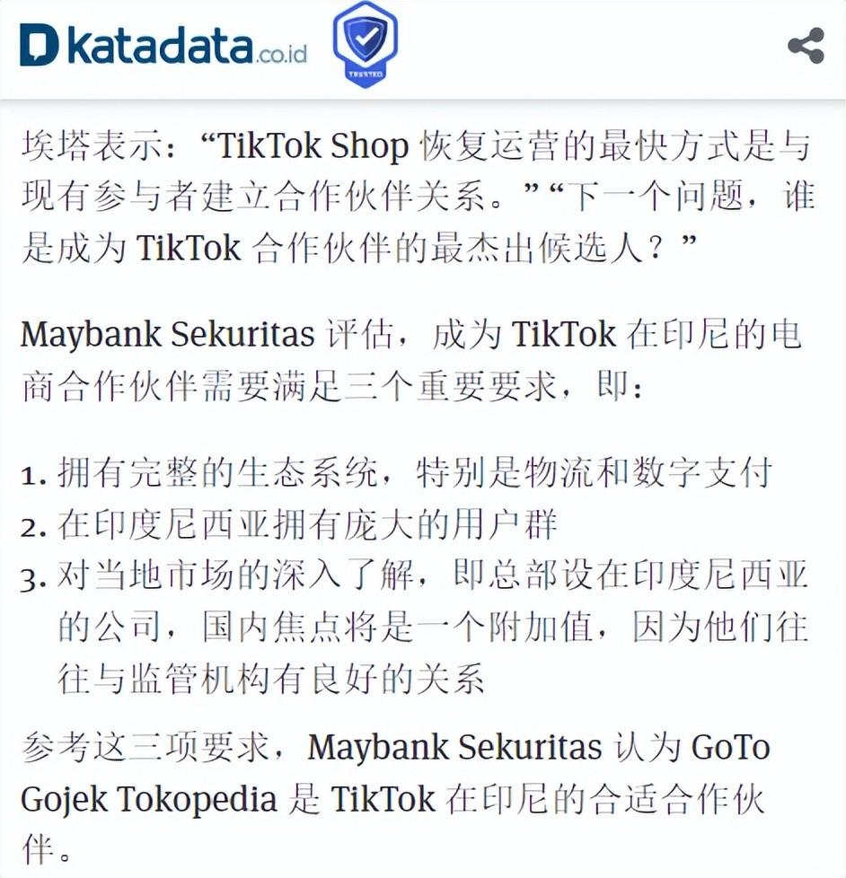 而从市场竞争这一层面来看,Tokopedia的这一举措可以视为吸收了TikTok Shop剩余的流量,加速了Tokopedia进一步拿下印尼社交电商领域的脚步。