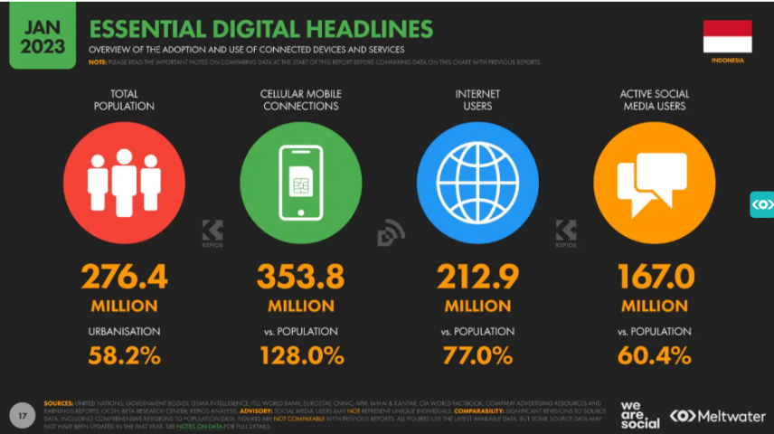 数据显示,印尼通过社交媒体寻找和购买商品的人数,接近总人口的50%。