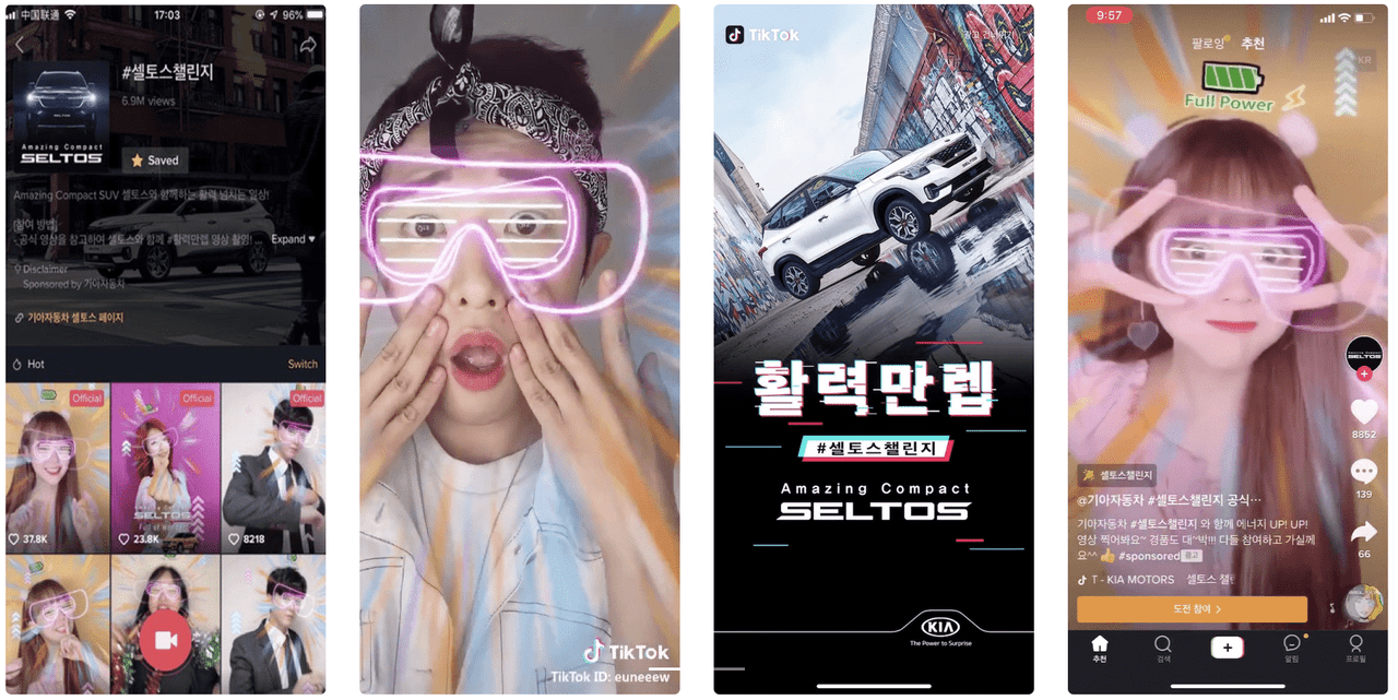 起亚投放了两天的开屏广告,以及三天的信息流广告,并邀请了三位热门网红参与挑战赛,让活动影响力进一步提升。越来越多的 TikTok 达人开始加入这次挑战赛的潮流,使推广活动的热度得以延续。与此同时,Seltos 挑战赛所传达的理念影响力不断扩大,在年轻受众中产生了强烈的共鸣。挑战赛期间,用户的积极参与有效地提高了起亚品牌及其新产品在目标受众中的曝光,同时催生了大批创意十足的视频,淋漓尽致地诠释了 Seltos 小型 SUV 将如何重燃人们内心的活力。