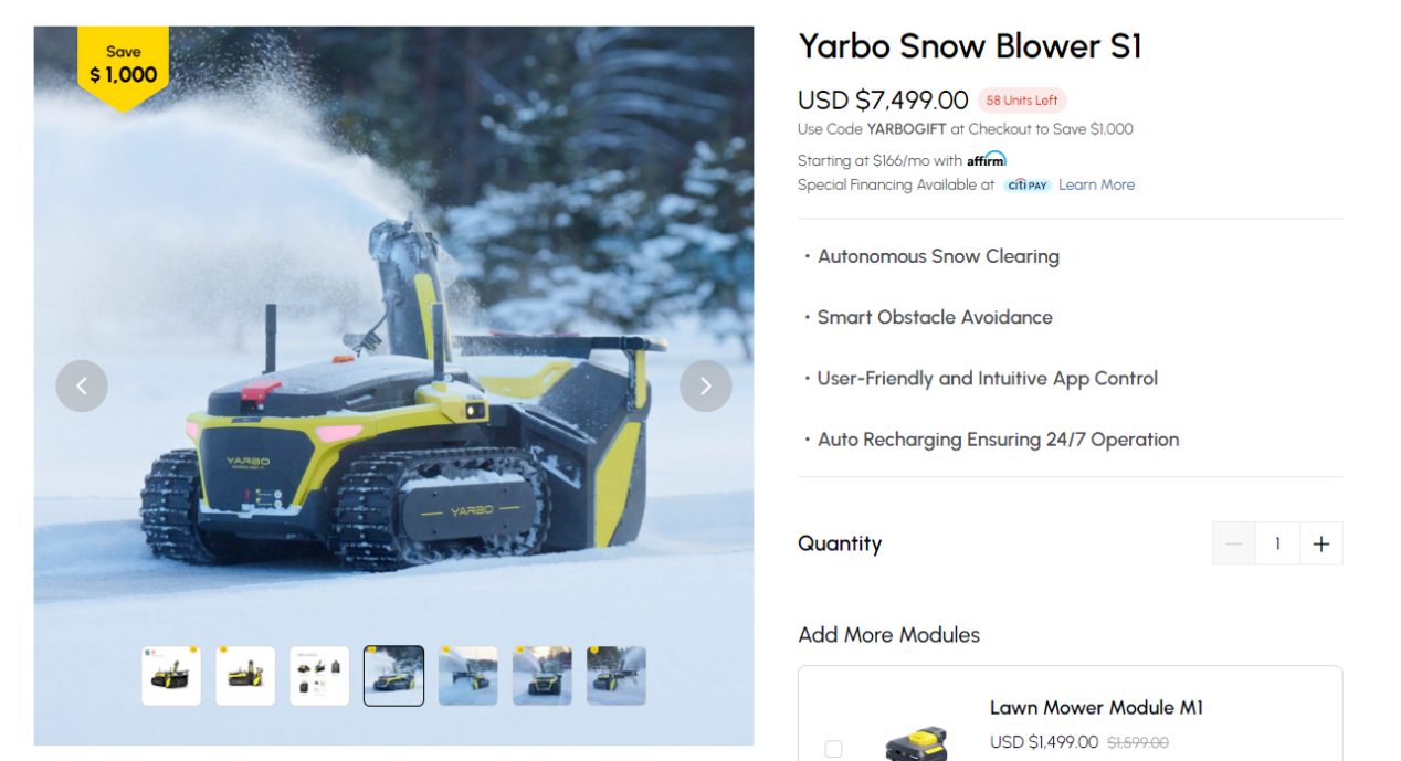 Yarbo是跨境大卖汉阳科技(深圳)2022年推出的庭院类型机器人,拥有除草、扫雪、清理落叶等多种功能。