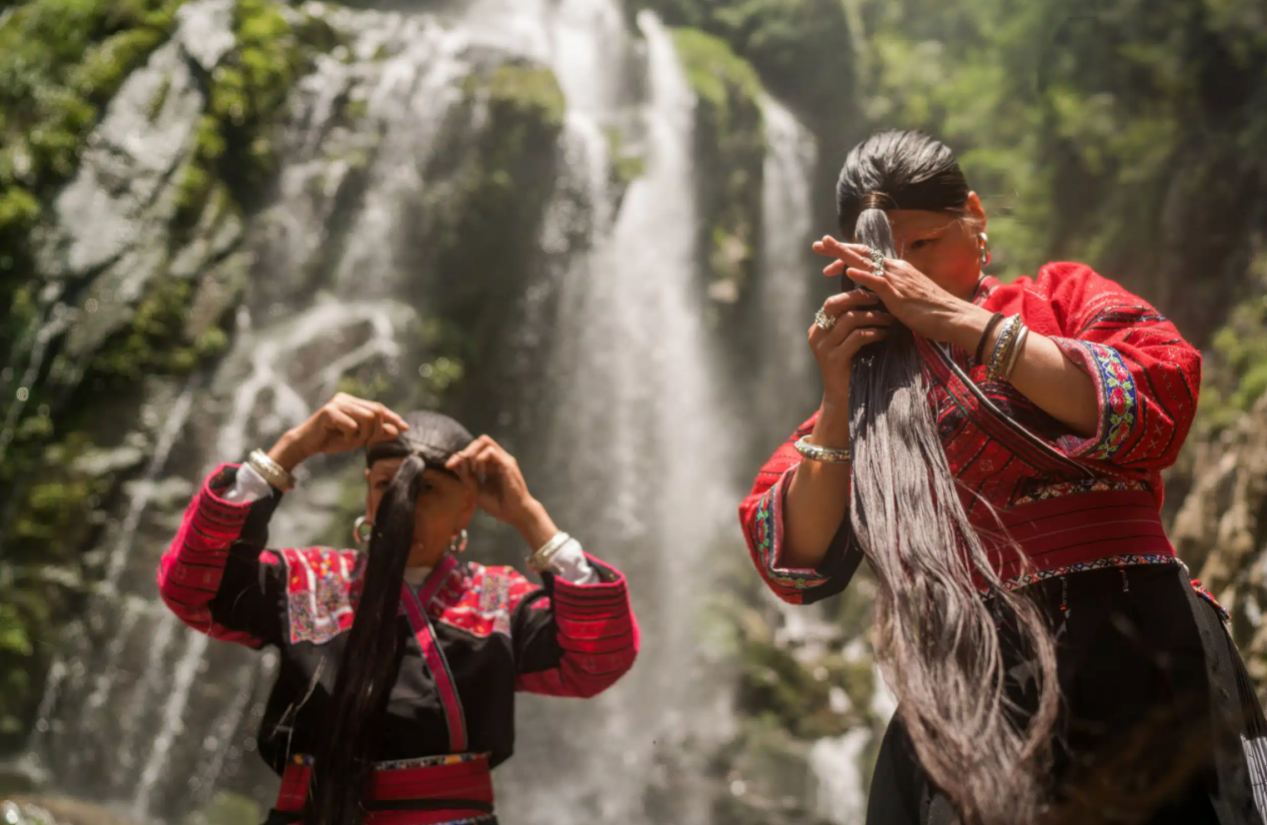 后来,热情的红瑶族人告诉他们,红瑶族有一种独特的护发秘诀,是由母亲代代相传,那就是每三天用他们龙胜村梯田的发酵米水,加上各种中草药配置的洗发水洗头。