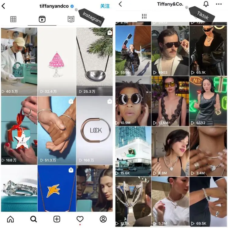 去年10月,蒂凡尼推出了一系列新广告。最初,这些广告在Instagram上发布,以歌星碧昂丝为主角。然而,当这些广告发布到TikTok上时,碧昂丝不再出现,取而代之的是一位达人站在自己的浴室里,直接与粉丝分享试戴不同产品的感受。
