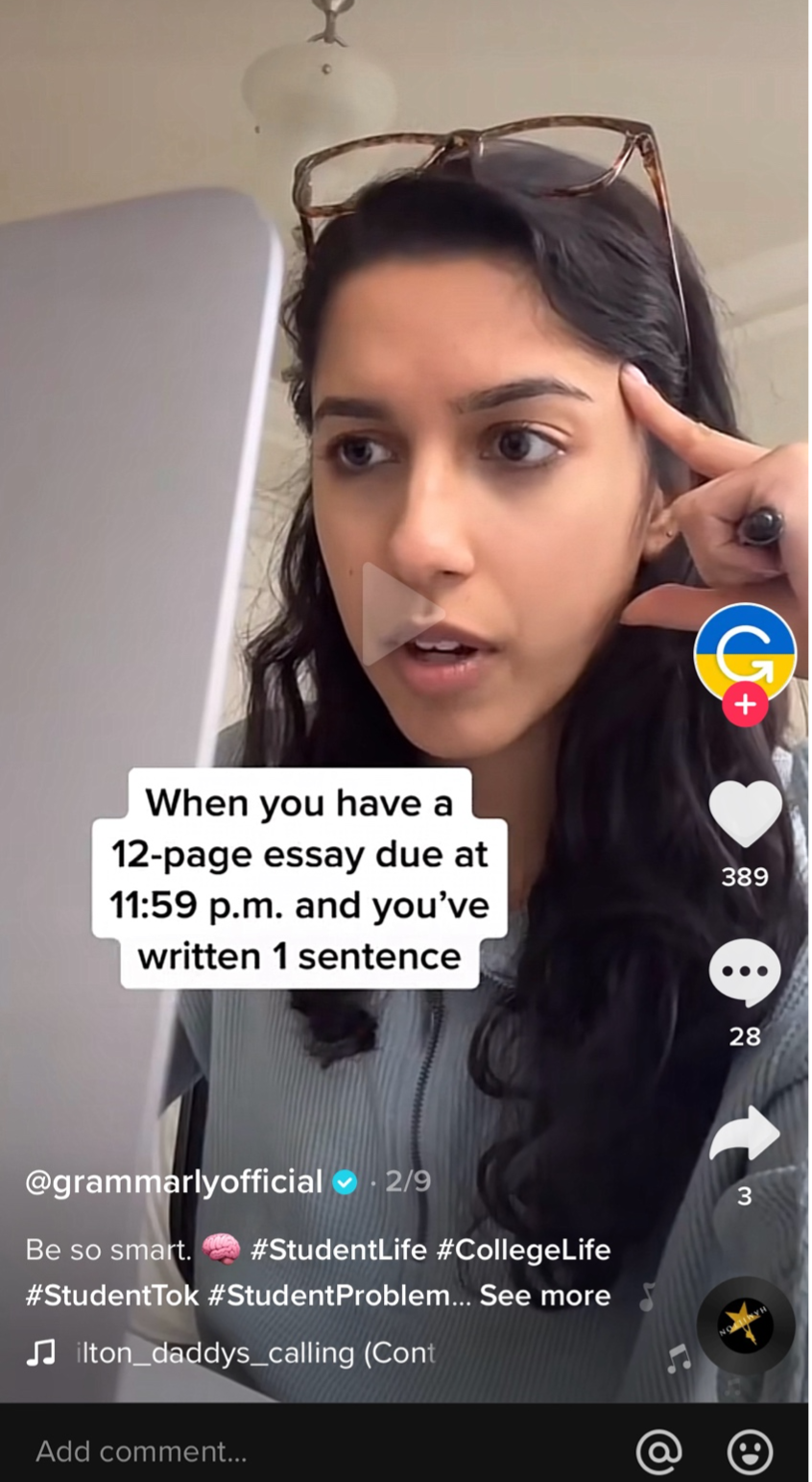 Grammarly这款流行的文本编辑软件拿最后一分钟写文章的挑战开玩笑,拿语法错误开玩笑,并找到曾经做过这个挑战的人——几乎所有人。他们的内容是相关的,也显示了他们的产品的价值。