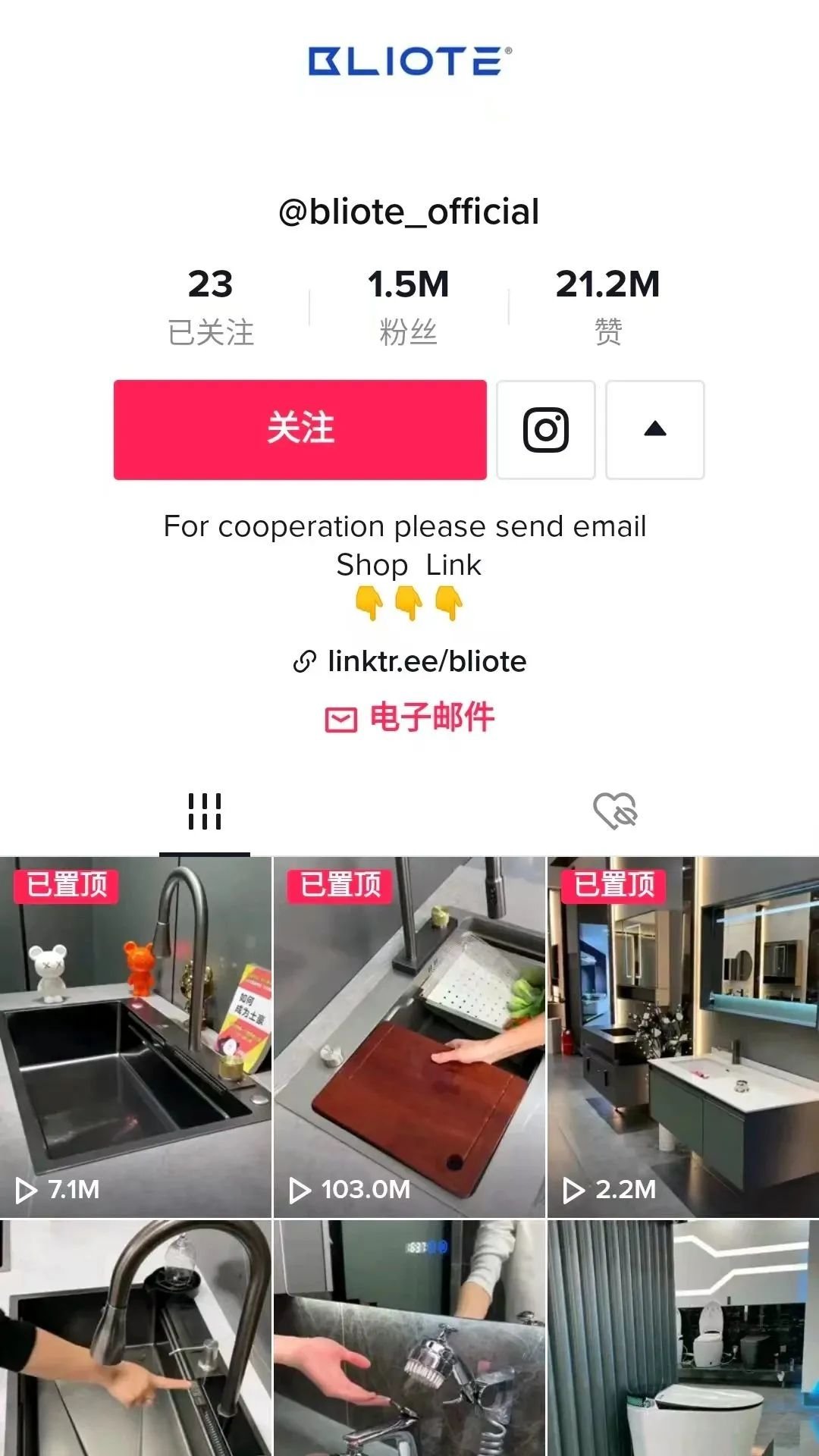 BLIOTE是一家厨房水槽公司。他们的视频利用炫酷的镜头语言和背景音乐巧妙结合,给予受众极其舒适的观看体验。给观众留下干净、整洁、明亮的厨房水槽印象,吸引TikTok用户停留关注。