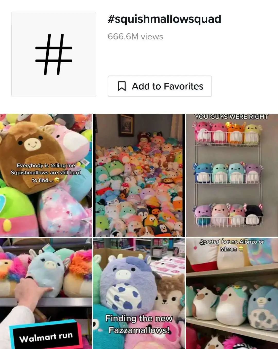 目前,#squishmallowsquad标签已经成为TikTok上最受欢迎的标签之一,已经获得了6.6亿的播放量。这个标签内的内容都是由购买过Squishmallows玩具的网友们通过TikTok分享自己的喜欢和使用心得。还有一些网友会制作有趣的短片,让Squishmallows玩具变得更加生动有趣。