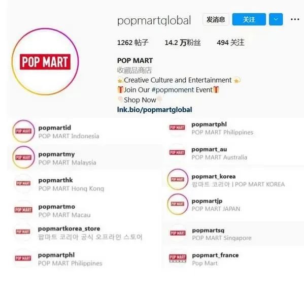 一方面,区别于不同的区域的文化背景,PopMart不同的市场有不同的宣传方式,创建了不同的区域矩阵账号。