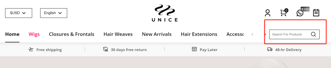 此外,UNice官网还设有产品搜索框,帮助客户快速检索所需产品,进一步满足客户的搜索需求。这种设计不仅方便了客户的浏览和购物体验,还能增加客户在网站上停留的时间。