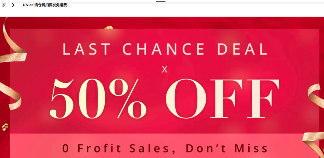 当然,除了外部引流,UNice也通过站内活动来引流,而且做得很出色。他们举办了一系列活动,如清仓折扣大甩卖、节日优惠、限时优惠、团购刺激新用户加入、新品折扣、领取优惠券等等。这些活动吸引了客户的关注,并促使他们进行购买,同时也增加了客户在网站上的停留时间。
