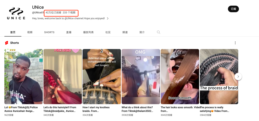 UNice最早在YouTube上展开品牌宣传,并在六年前开始布局。在YouTube平台上,UNice保持了较高的视频发布频率,通常每周发布1到2个视频。一些热门视频的播放量能够达到上百万次,同时也积累了两千条用户评论。