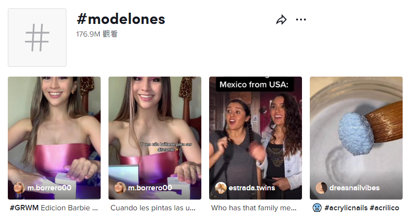 在TikTok上,Modelones主要致力于发布各种美甲教程、产品展示和优惠活动。为了提高视频的曝光度和流量,Modelones使用一些热门的话题标签,例如#modelones,#modelonescolorcube,以及#stpatricksday等,创造了累计高达1.7亿的播放量。此外,Modelones还与一些有影响力的美甲博主/KOL进行合作,在视频中推荐或使用Modelones的产品。