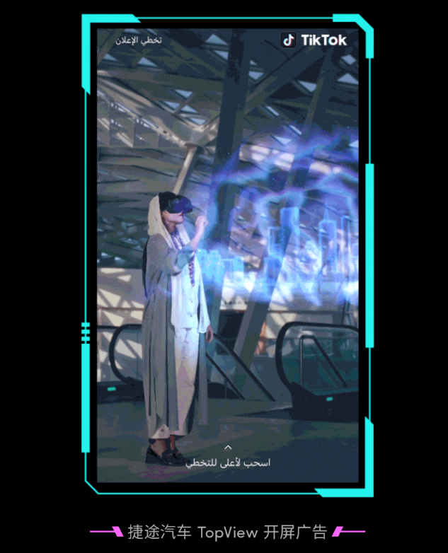 捷途汽车,这次将目标市场放在了沙特阿拉伯和墨西哥,通过Top View这一全屏沉浸式的TikTok广告投放形式,捷途汽车“先声夺人”,成功造势,将大圣车型的精美外观、智能交互等核心卖点充分传递给了用户,充分激发了大家对于大圣车型的兴趣。