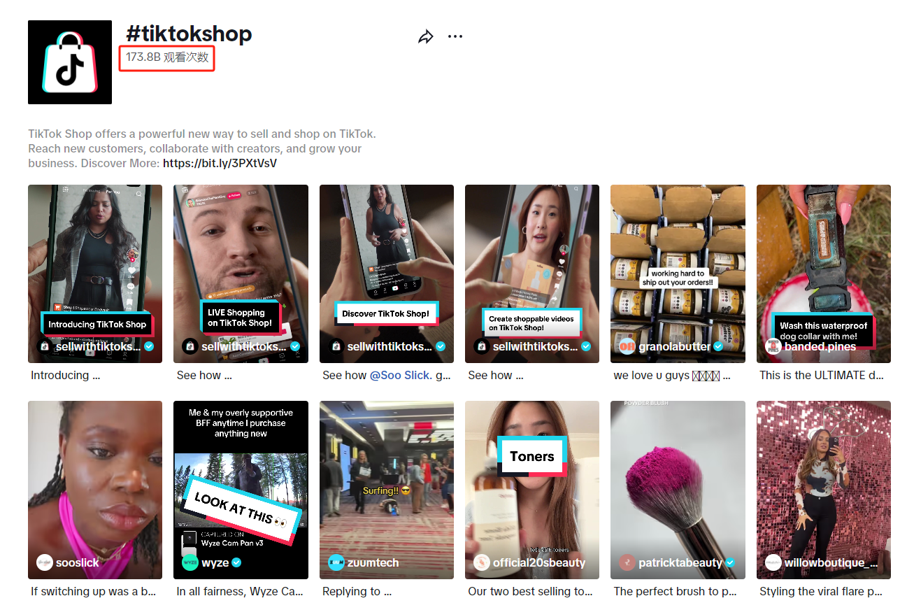 据最新消息显示,标签#tiktokshop浏览量,目前已在TikTok突破1738亿次!