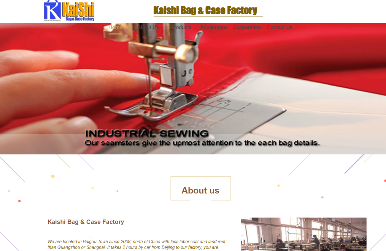 某箱包类to B企业独立站截图