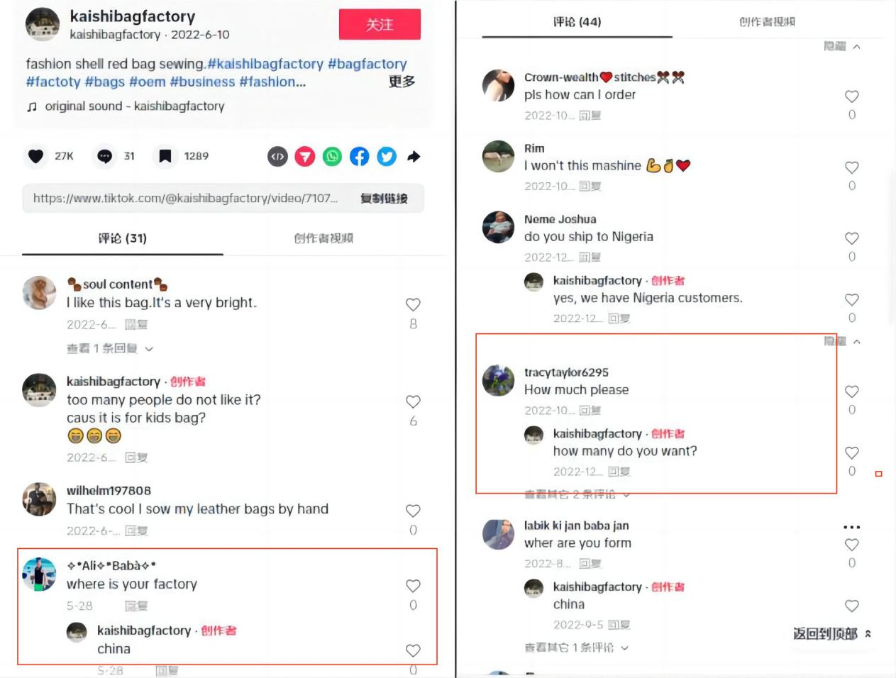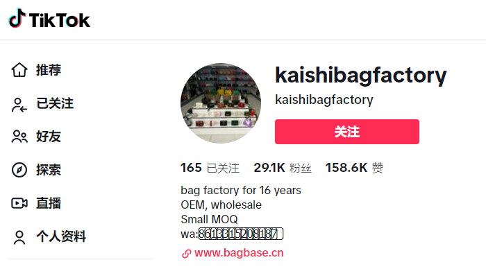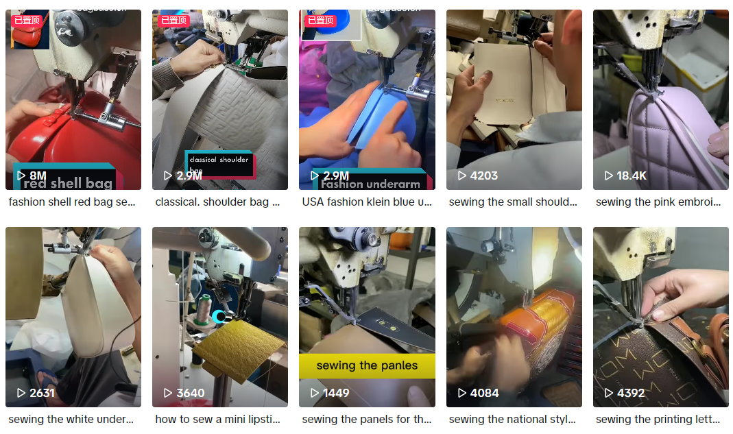比如现在在TikTok上很火的一个to B箱包工厂,@kaishibagfactory,它的工艺视频就做得非常不错。