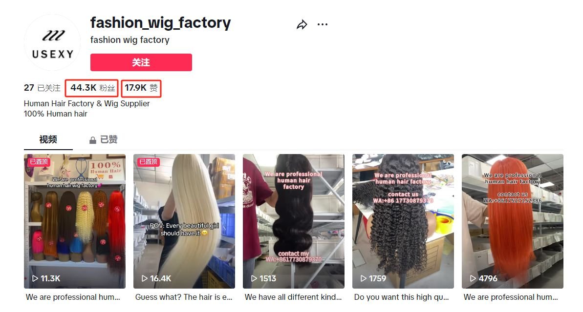 与动辄百万粉丝数、千万播放量的达人相比,USEXY假发品牌工厂的粉丝数或许不算多,但其收获的询盘数却让人出乎意料!
