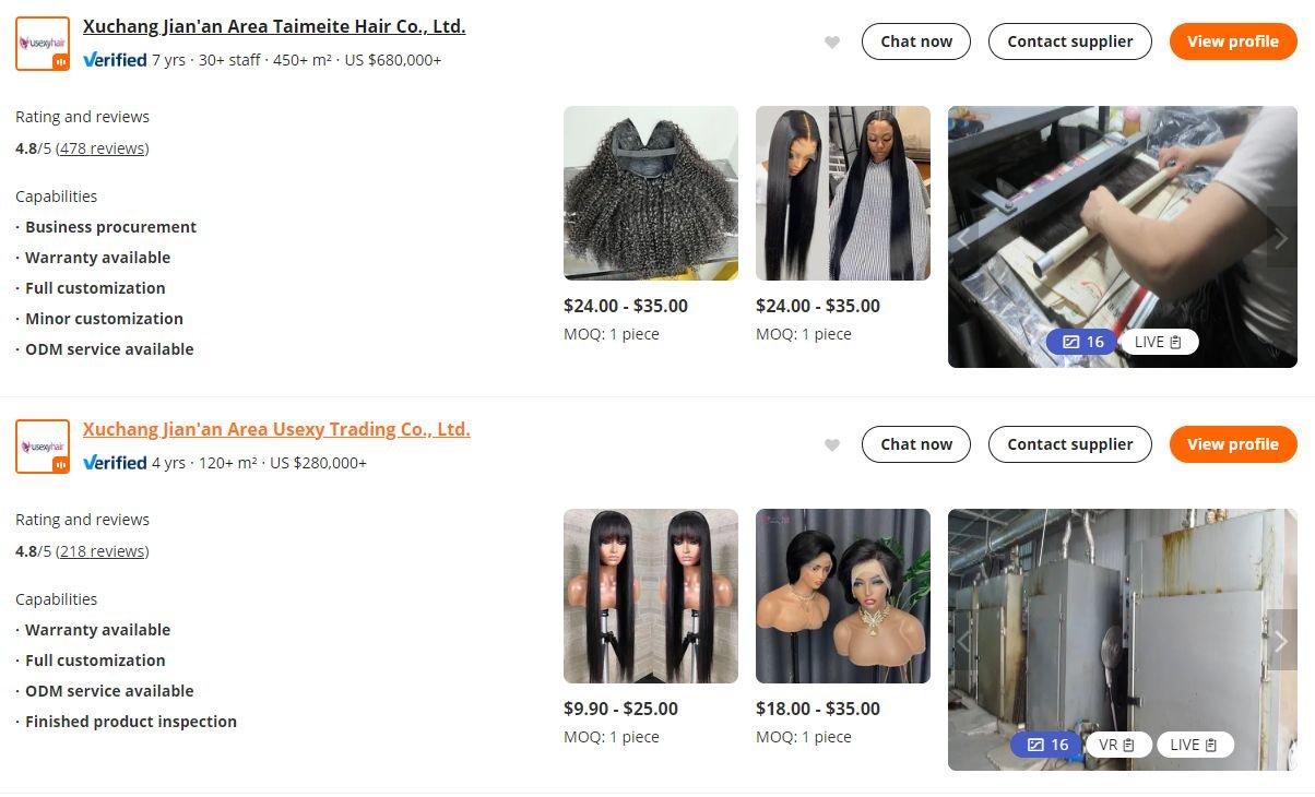 USEXY假发品牌工厂同样入驻了阿里巴巴国际站,从图上能看到,该品牌入驻的时间不短,并且已经卖出了不错的线上销售成绩。