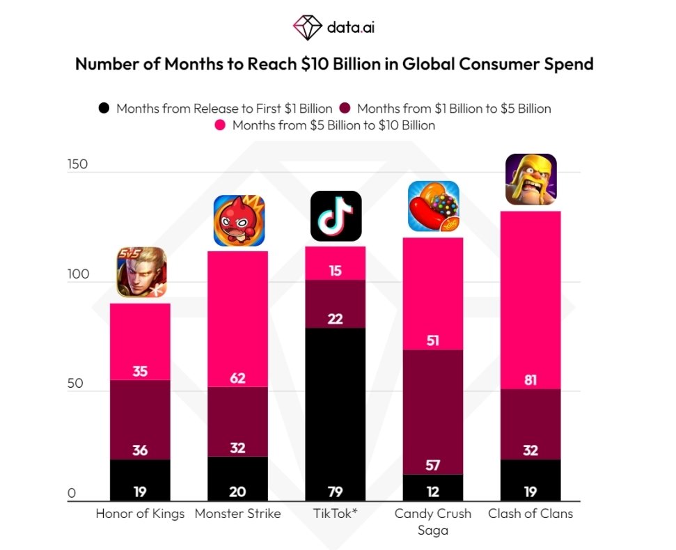 TikTok也成了首个创造100亿美元消费者支出的非游戏移动应用。