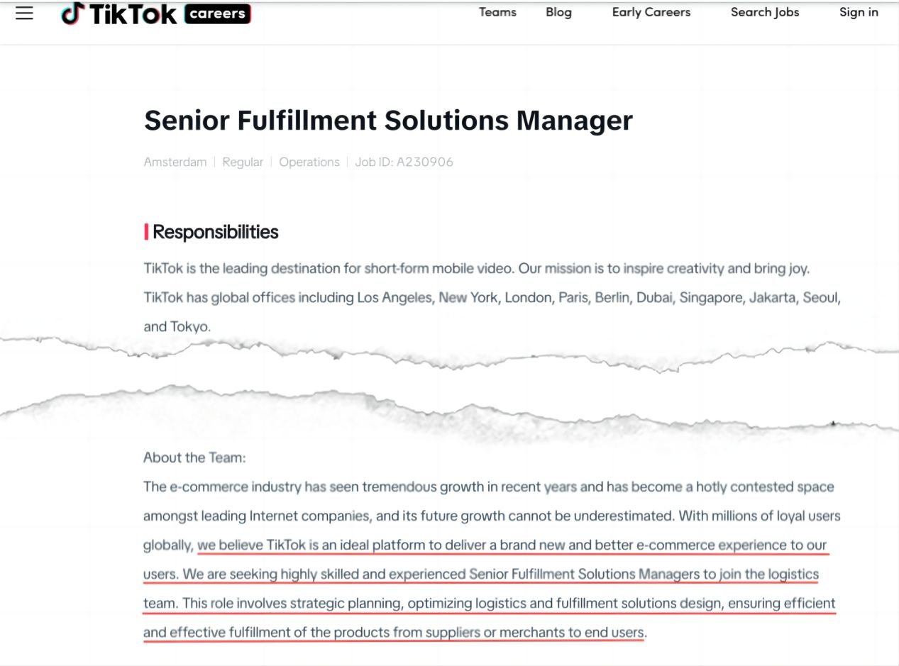 同时,TikTok开始在欧盟国家地区疯狂招聘与电商、物流相关的职位,欲加快在欧洲拓展电商业务的步伐。
