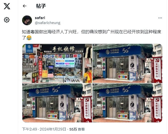 在帖子中,一个叫“safari”的用户说 :“知道粤国做出海经济人丁兴旺,但的确没想到广州现在已经开放到这种程度了”,并配了几张广州街头的图片。