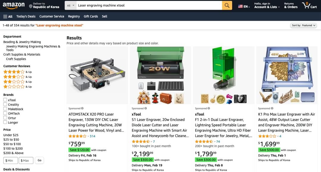 然而就在2021年至2022年期间,激光雕刻机的需求却迎来了猛涨。据亚马逊数据显示,仅一年期间,激光雕刻机这一类目在亚马逊上的销量就暴涨1310%,迅速成为创意人士和手工极客的新宠。