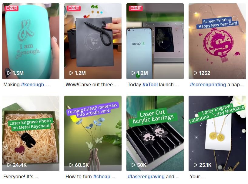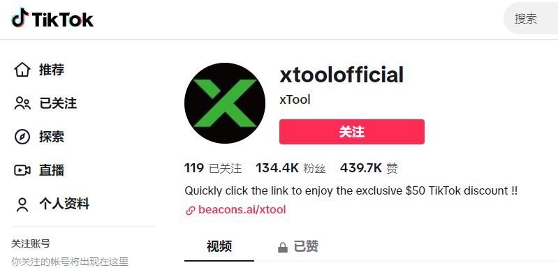 但xTool的成功并非偶然,而是源于对市场趋势的敏锐洞察和精准定位。他们不仅提供高品质的激光雕刻机,还通过线上平台和社交媒体积极推广相关教程和创意项目,激发消费者的创作热情。仅@xtoolofficial这一个TikTok社媒账号,就累积了13.4万粉丝,获44万点赞。