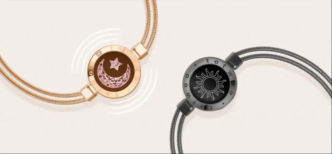 和传统饰品不同,它融入了智能科技,只需轻轻一触,伴侣的手环就会震动并发光,无论你们身处何方,都能感受到彼此的深情厚谊。