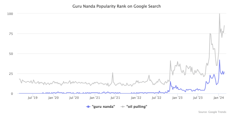 就连在Google上,“guru nanda”和“oil pulling”的搜索量也都有大幅度地增加。