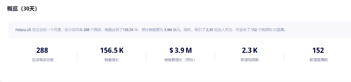 例如最近的一个月里,Halara关联的达人就高达2300位,30天预计GMV 390万美金。