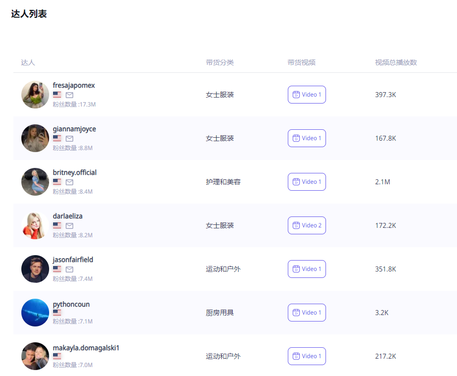 这些海外达人带货的种类各有千秋,大多为中腰部海外网红,当然头部网红也有不少,其中甚至有一位粉丝数达1700万的大咖@fresajapomex。