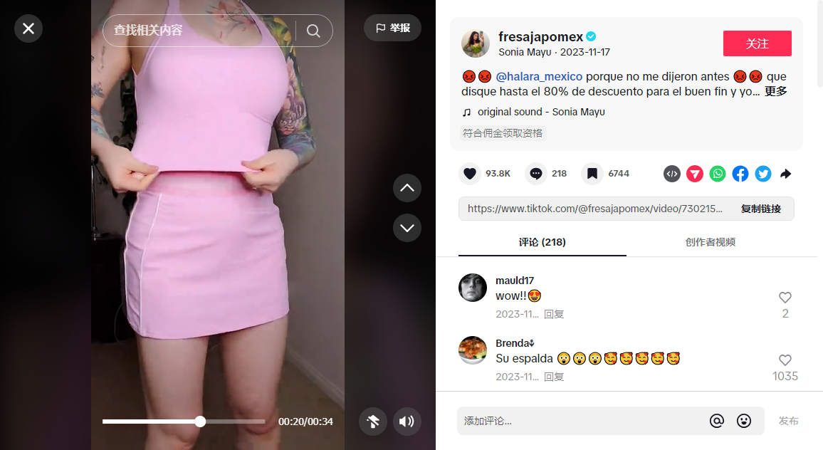 @fresajapomex在视频中,展示了Halara运动裤的舒适与美观,让大家看到了穿上它后的瞬间变化,直击无数年轻女性消费者的心,也为Halara带来了大量的热度和流量。