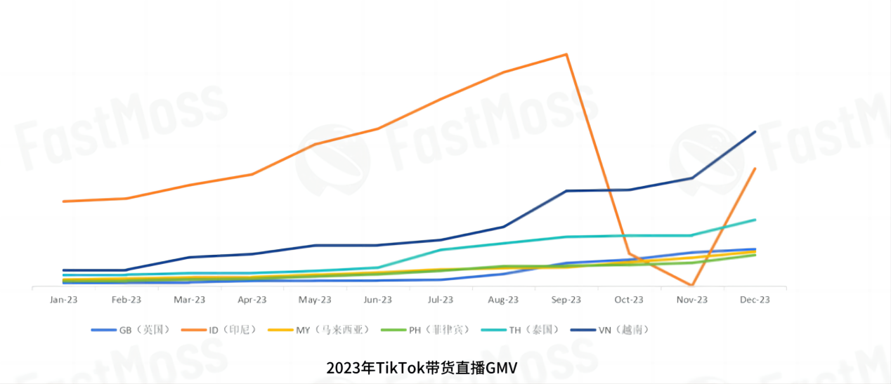 回顾2022年同期,TikTok Shop在东南亚六国掀起了一股网购狂潮,而印尼站更是表现突出,仅11月11日当天的直播带货GMV就增长了408%。