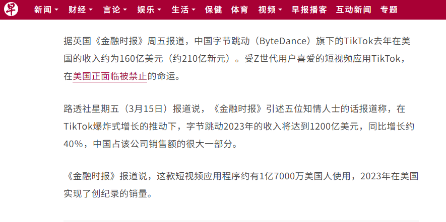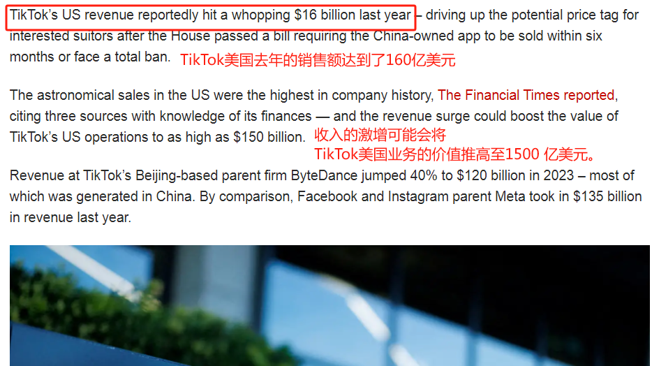 不只如此,TikTok在美的用户数量,英国《金融时报》报道约有1亿7000万,2023年在美国实现了创纪录的销量。