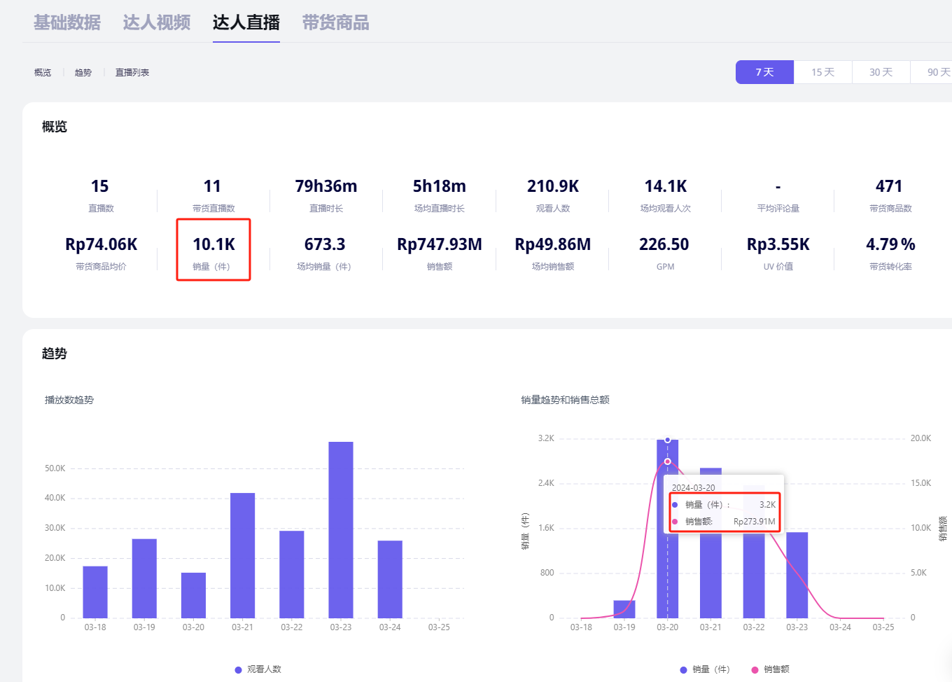 不过,从销量来看,是在3月20日出现了小高峰,当日销量达到3200件,取得2.73亿印尼盾销售额。