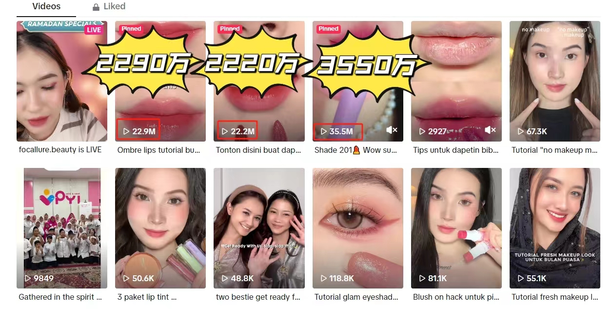 研究Focallure Indonesia小店能够在印尼市场取得如此成绩的原因,与其在TikTok持续直播带货密不可分。