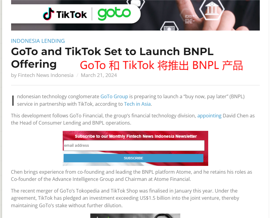 这样多方因素综合下来,TikTok与GoTo联合推出先买后付这一支付方式,也就是双方的深度合作稳步推进下的成果了。