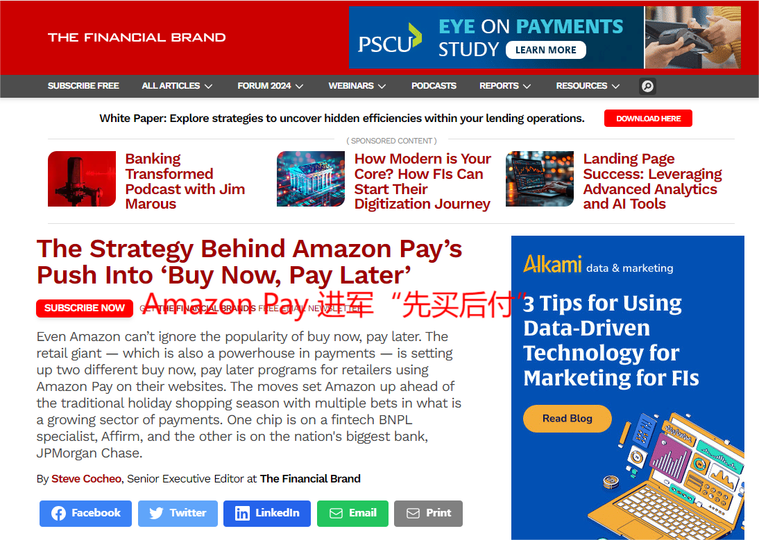 亚马逊新增两项先买后付服务 图源:The Financial Brand