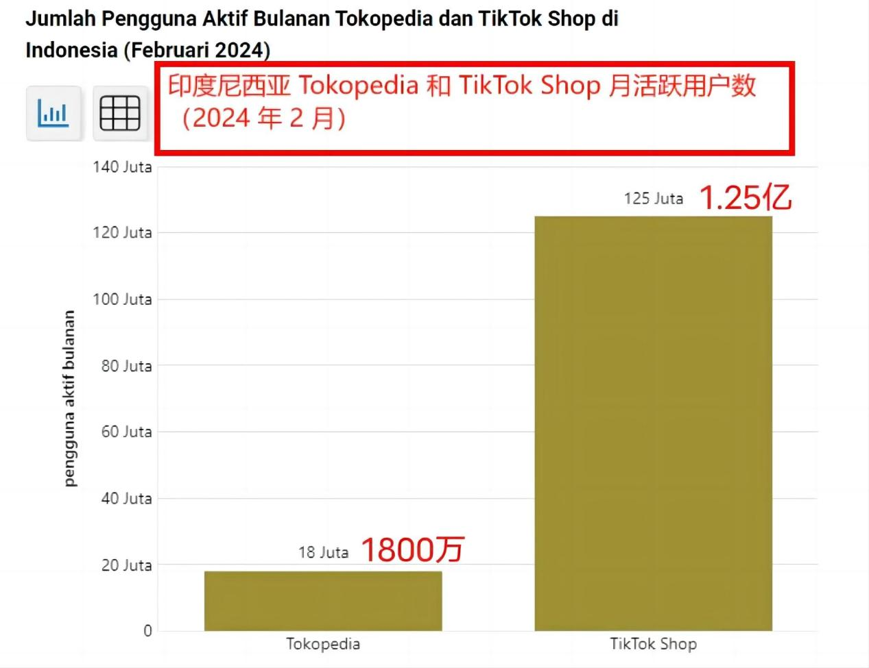 据2024年2月GoTo公布的《偶发公开揭露》报告显示,Tokopedia的月活跃用户大约为1800万,而TikTok Shop的月活跃用户达到了1.25亿。合并后,两个平台的覆盖用户总数则接近了1.43亿。