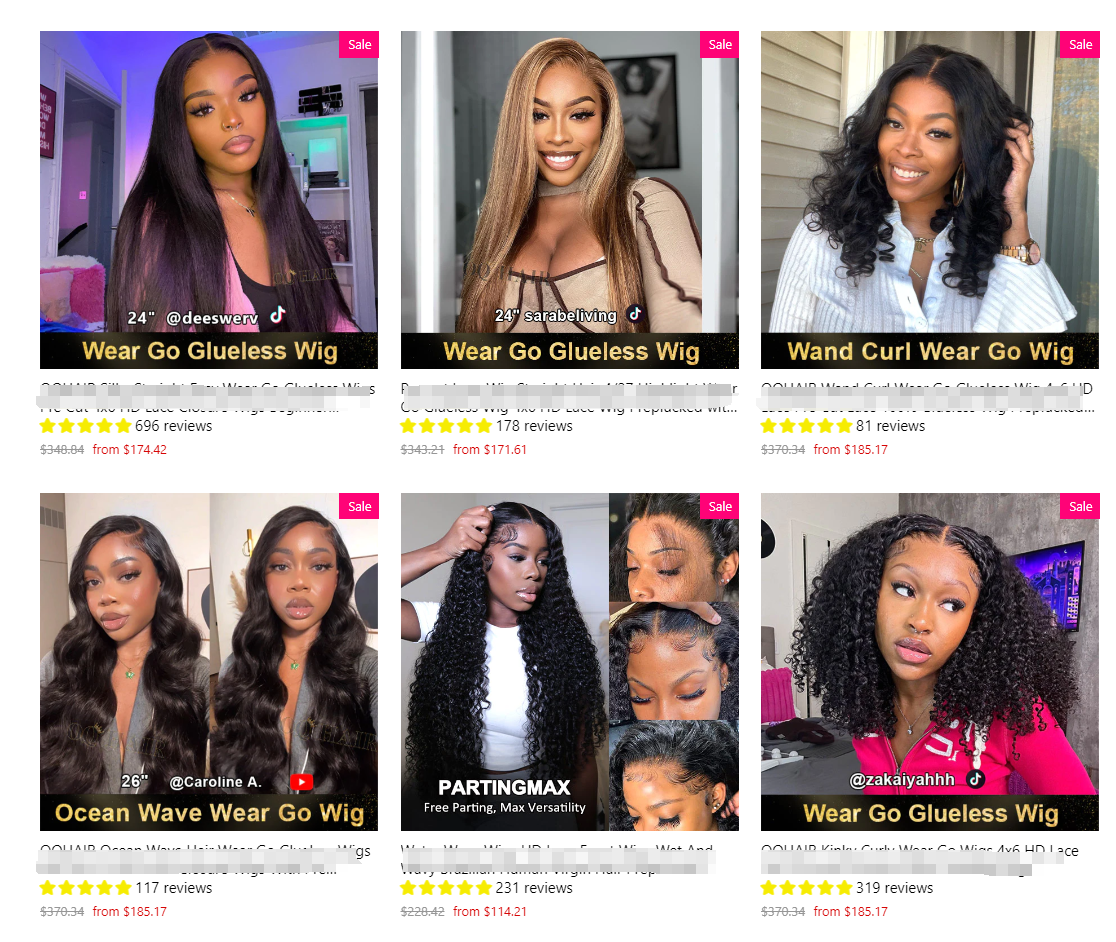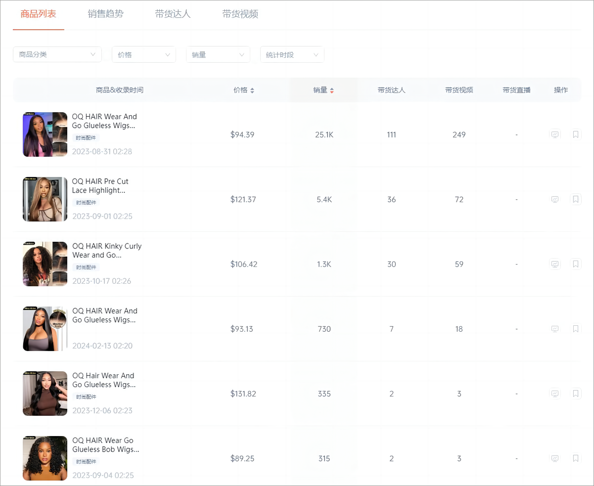而从合作结果来看,OQ HAIR SHOP无疑非常成功,多款假发产品均通过达人带货,取得了不错的销量。