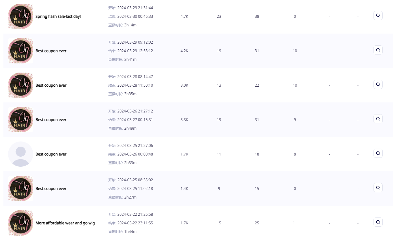 据启航了解,最近30天(截至3月30日)其共进行了7场直播,5次为带货直播,均场观看人数为2400人,累计观看人数1.71万人,带货商品数48。与达人合作的带货成绩相比,这份成绩虽然没那么亮眼,但对于粉丝仅有1.92万的小型主播来说,已经是非常难得了。