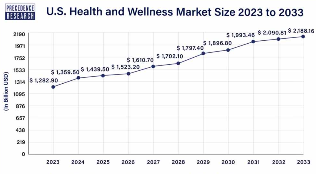 2023年至2033年美国健康与保健市场规模 图源:Precedence Research