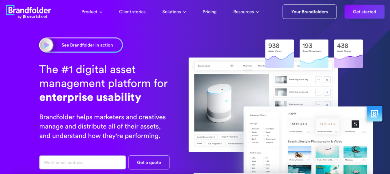 Brandfolder是一款基于云的数字资产管理 (DAM) 工具,可以帮助团队简化品牌管理。它提供了一个用于存储、组织和分发数字资产的集中存储库,能够确保所有团队成员都可以轻松访问品牌指南、徽标、图像以及其他相关营销资料。