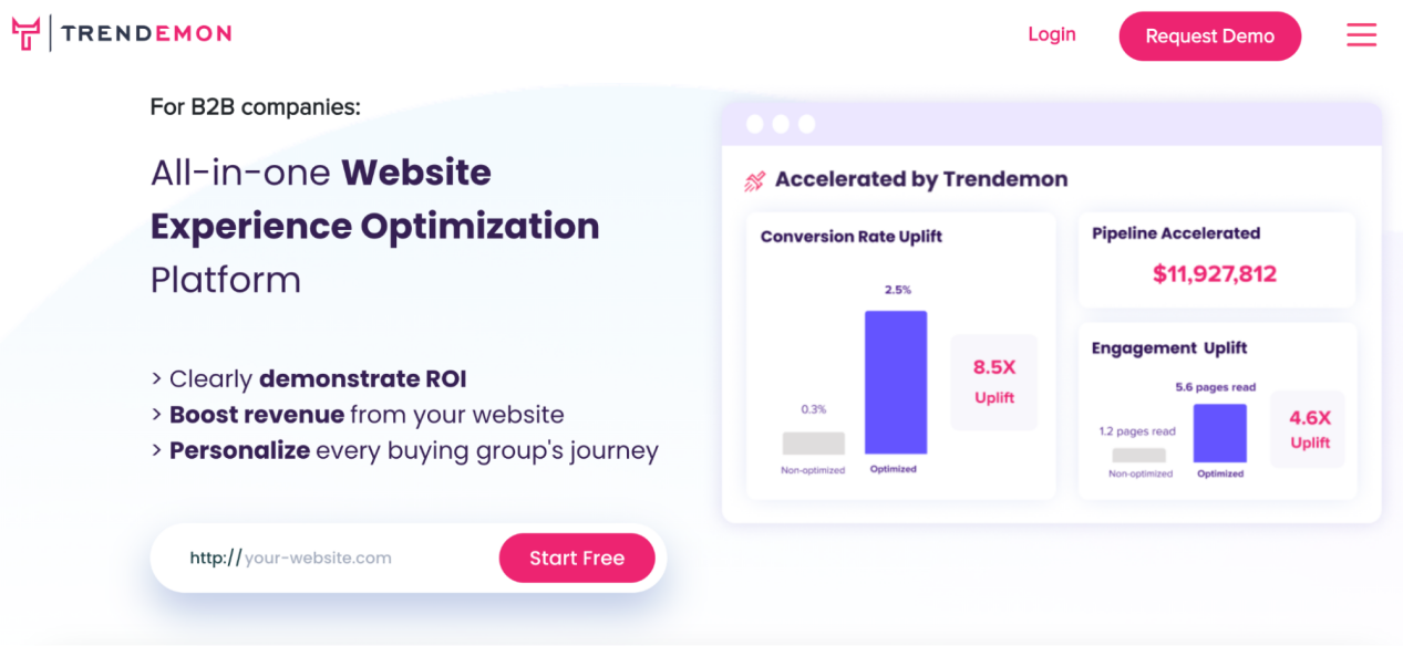 Trendemon支持高级分析功能,可以实时跟踪和可视化在线客户行程,从首次访问到转化。它还能与流行的CRM平台:Hubspot、Marketo和Pardot(现为 Marketing Cloud Account Engagement)进行连接和数据共享。