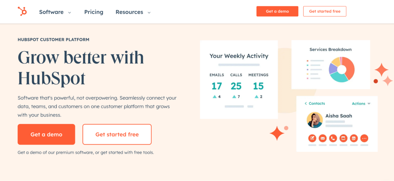 除了广受欢迎的CRM系统外,HubSpot还提供各种自动化功能,包括内容创建、社交媒体管理、电子邮件营销、PPC优化和分析。这个一体化平台可以帮助出海企业跟踪客户行程并有效培养潜在客户。