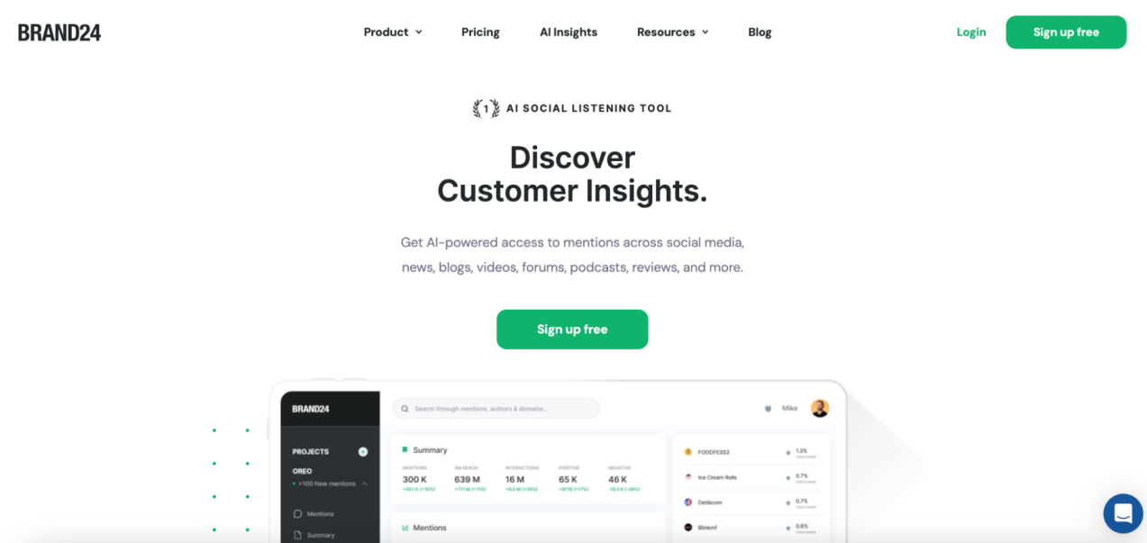Brand24能够追踪并分析线上渠道品牌的提及情况。它会检查这些对话的语气进行情感分析,帮助公司了解他们的受众是如何看待他们的品牌的。