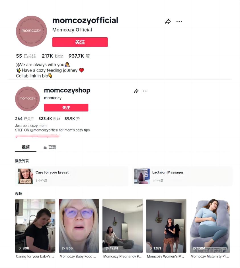 在TikTok上,Momcozy通过与母婴博主和生活类博主的合作,为两个主要账号积累了54万的粉丝和98万的点赞。