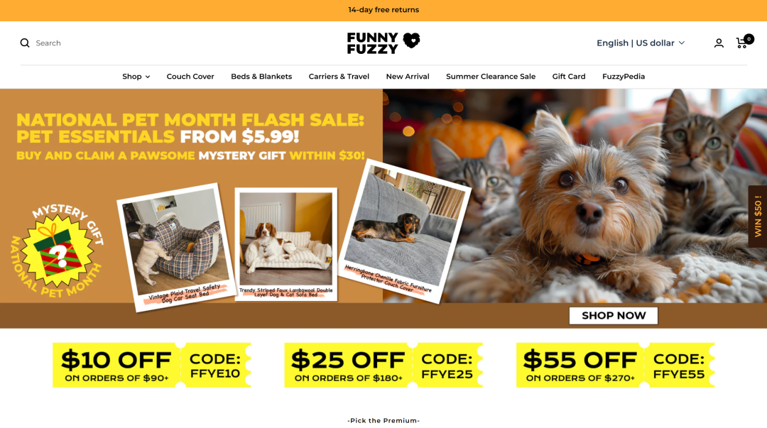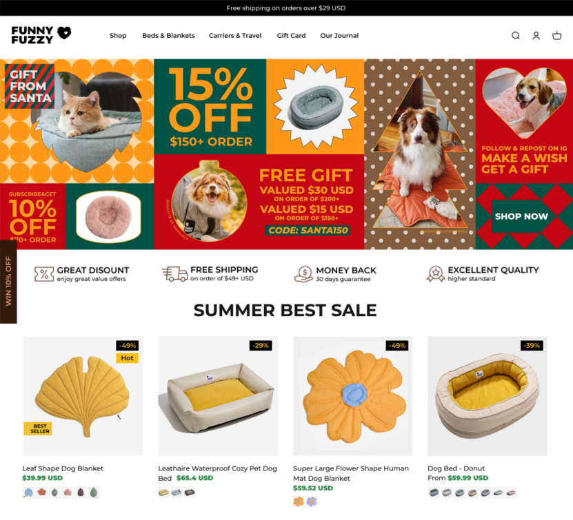 FUNNYFUZZY是一个主营独立站的DTC品牌,做的是宠物生活用品的生意。