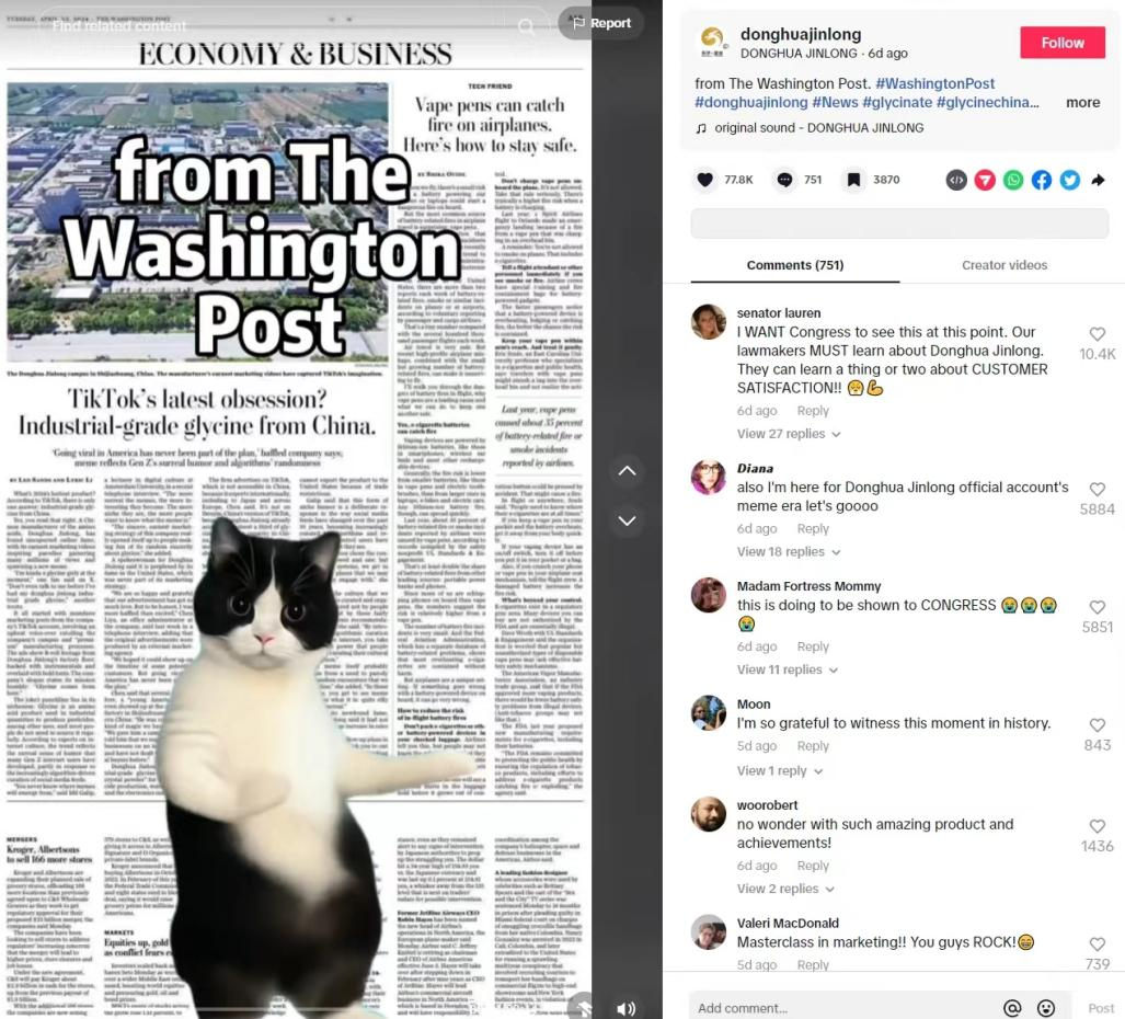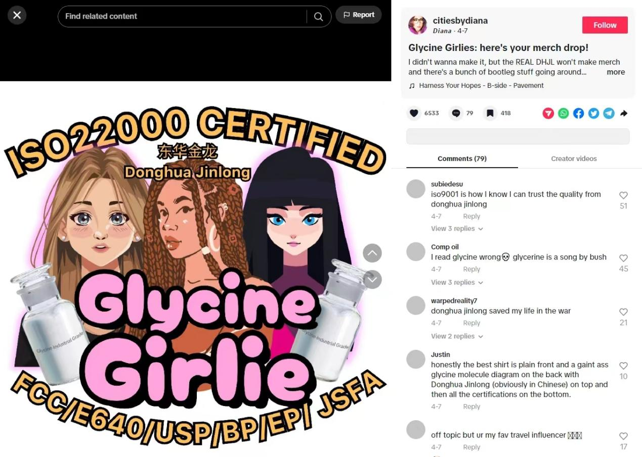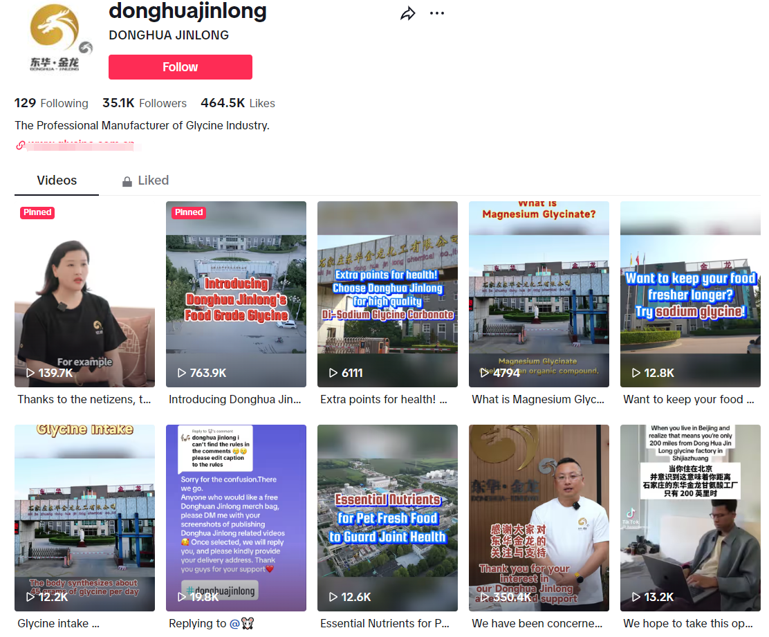 生产甘氨酸的化肥工厂东华金龙,一跃成为近期TikTok最炙手可热的“顶流”!