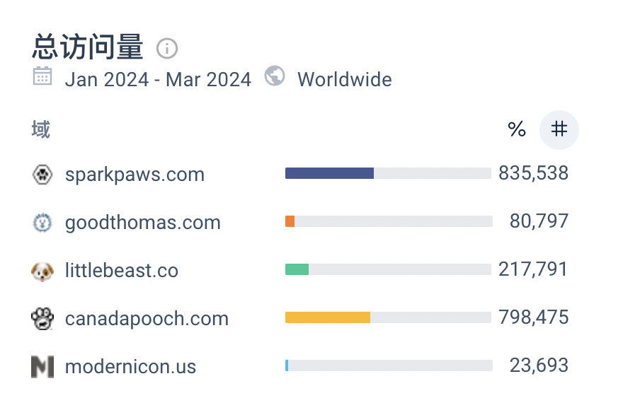 根据similarweb数据显示,2024年1月到3月期间,Spark Paws的独立站访问量达到了83万+,其中付费流量占到了30%以上。
