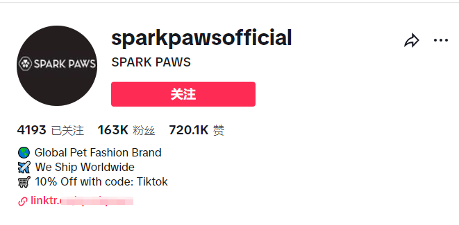 截至2024年5月,Spark Paws的TikTok账号粉丝已达16.3万,Instagram的粉丝关注量也已接近46万。